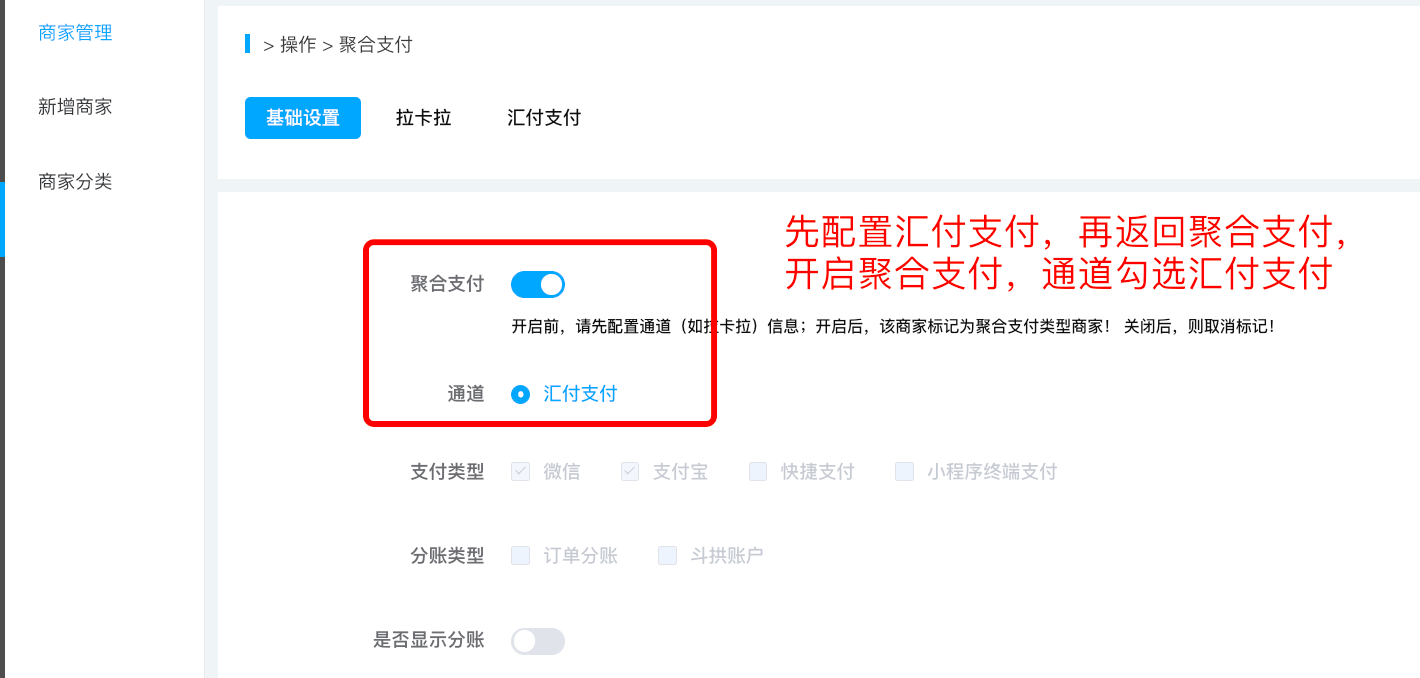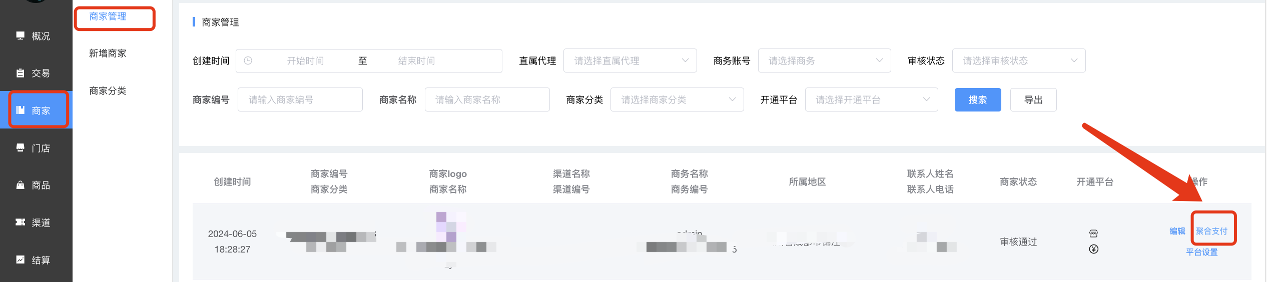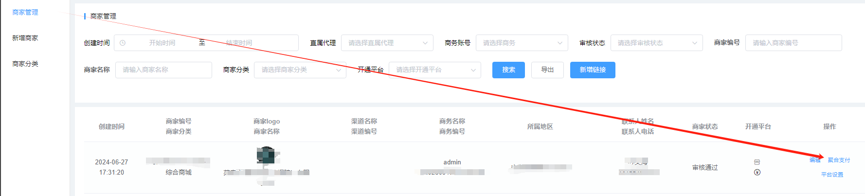 新增之后,在商家管理点击聚合支付