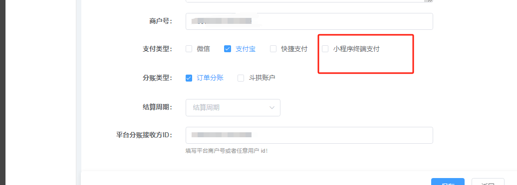 支付类型,有需要的且开通好的就勾选。