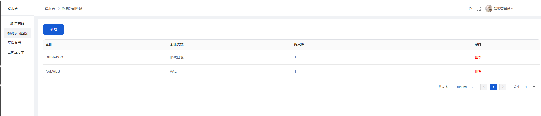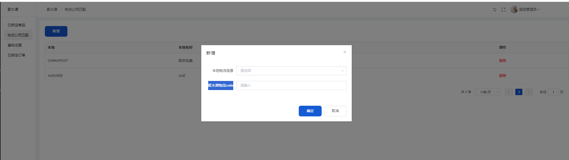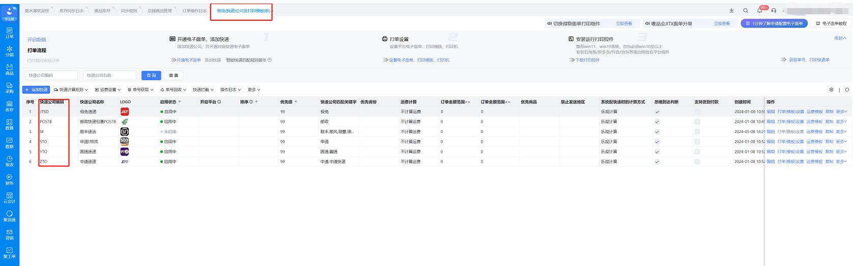 新增:填写本地物流信息、聚水潭物流code信息(进入聚水潭平台:https://www.erp321.com/epaas,物流(