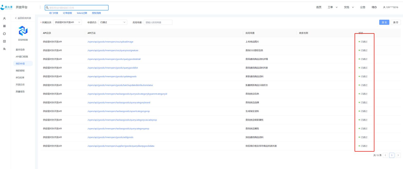 3、管理应用–应用–详情–我的申请,申请下相关接口权限