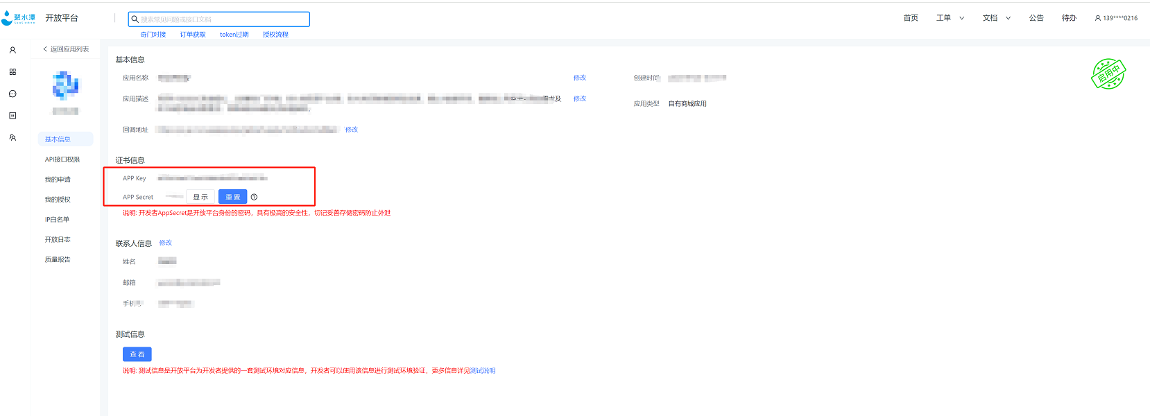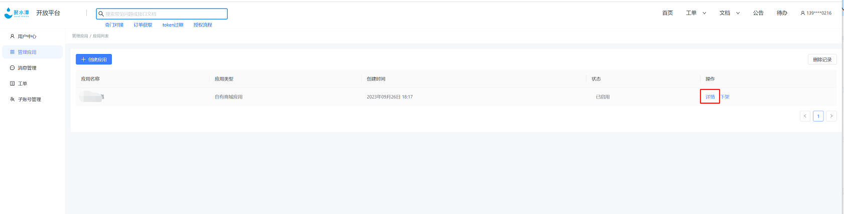 2、聚水潭开放平台–管理应用–创建应用–点击详情–基本信息–证书信息–复制APP Key、App Secret