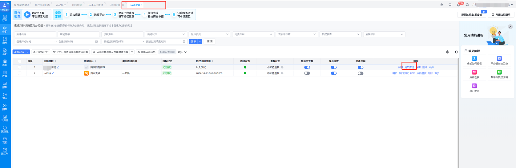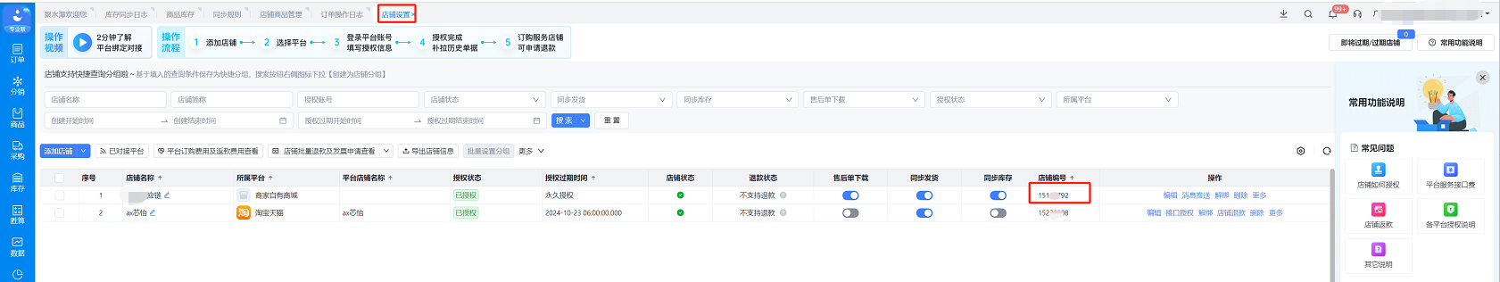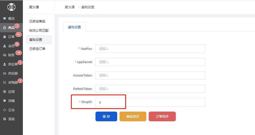 5、进入聚水潭平台:https://www.erp321.com/epaas,店铺设置–店铺编号,获取后填写到后台的ShoplD处