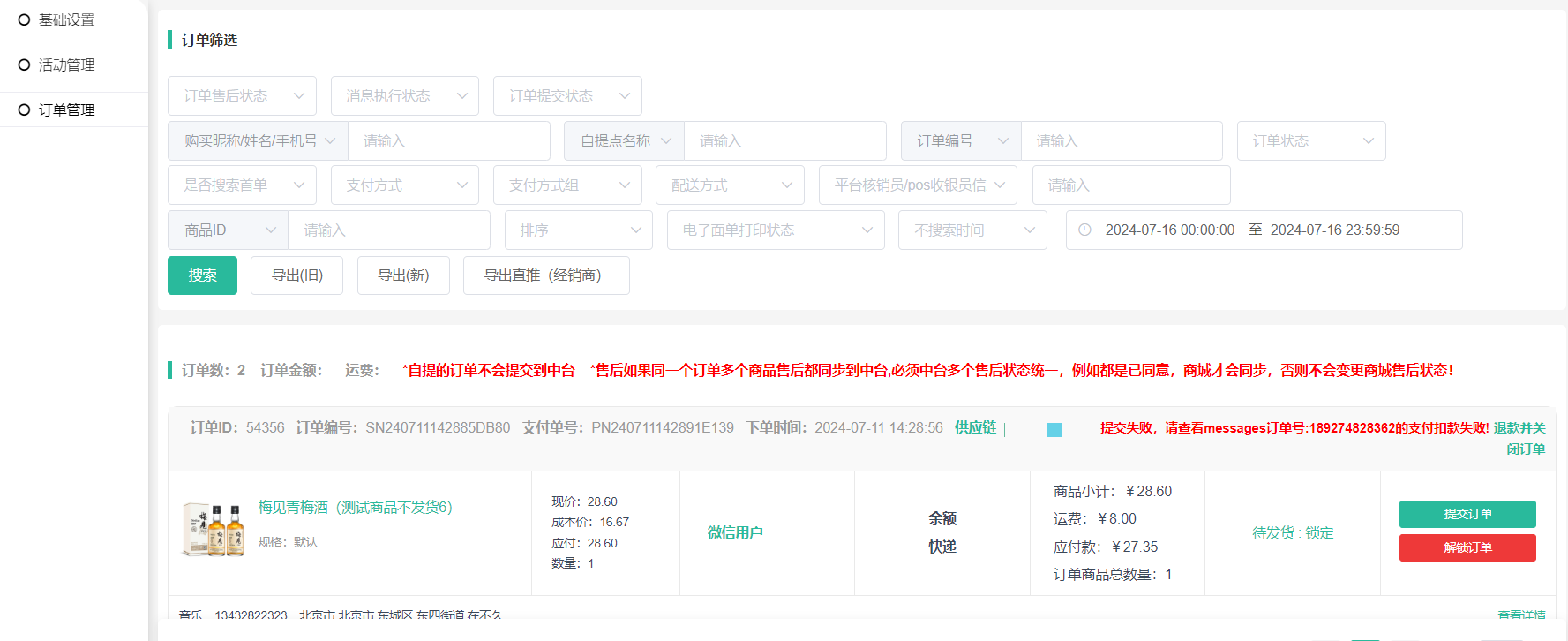 在活动中进行下单商品的订单信息,会同步到供应链中台,中台发货了商城会同步发货