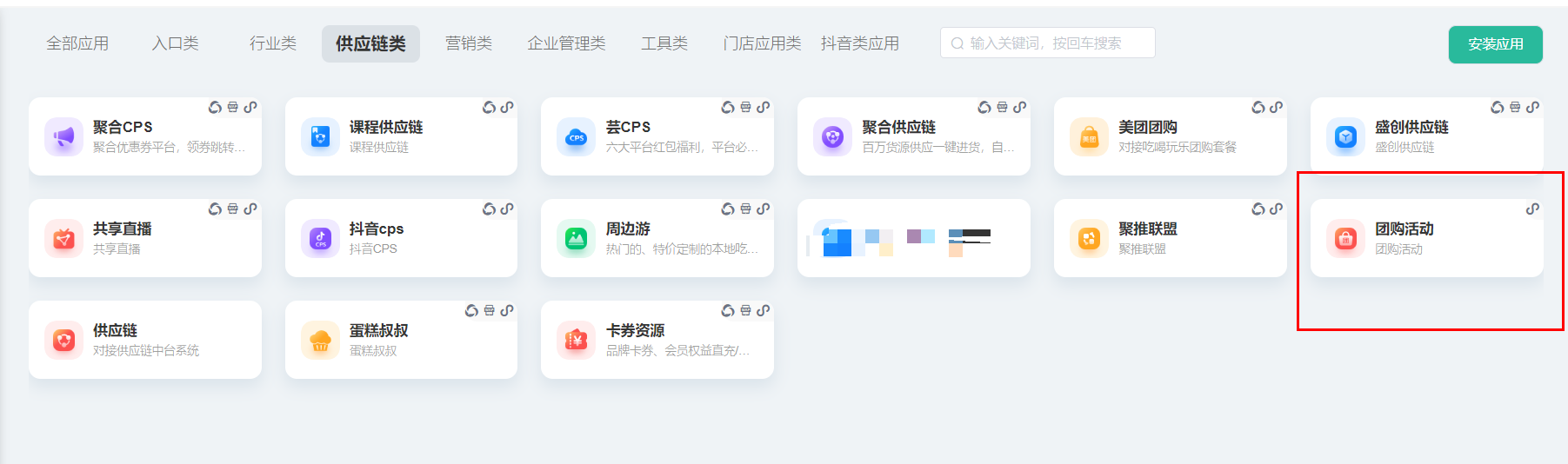团购活动功能需要对接供应链中台采购端权限;权限开通详询客服!