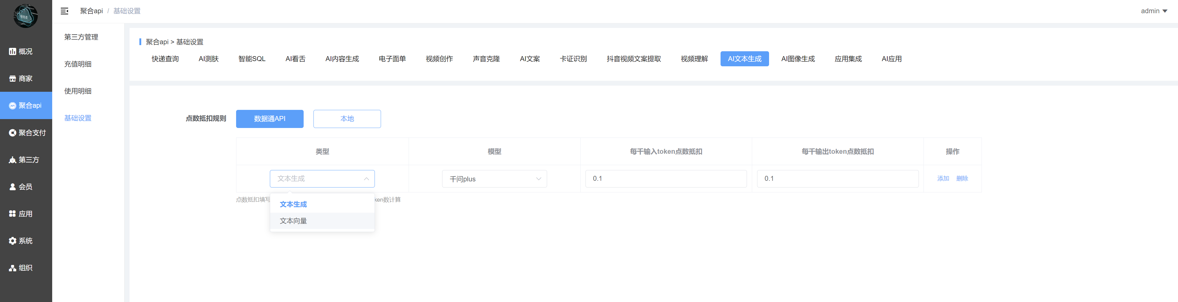 对接后,在对应接口的位置选择数据通接口,或者单独配置数据通信息即可调用数据通聚合api接口。