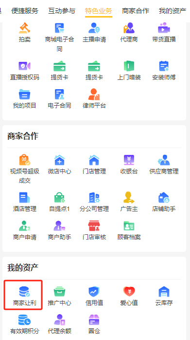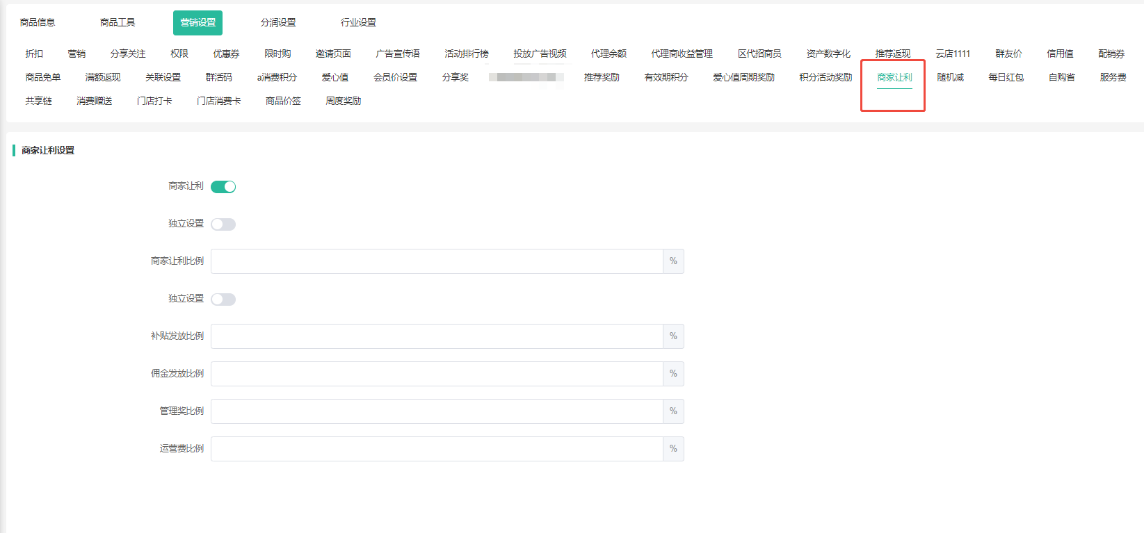 商家让利的模式主要是将平台的提成盈利让给消费者/⻔店商家或者是推⼴者团队,通过让利的⽅式来刺激平台推⼴和消费以及去吸引⻔店商家⼊驻平台。那么在实现让利的过程中,我们功能⾥⾯设计了有多种不同的让利机制,来刺激不同的平台⻆⾊。⽐如:把让利⾦额转化为冻结资产进⾏倍数奖励,让消费者或⻔店获得翻倍的奖励额度。或者是直接以佣⾦收⼊的⽅式进⾏奖励,让推⼴者实时获得佣⾦进⾏提现。不仅有多种类型的奖励,还有即时性的奖励和动态的奖励,不同类型不同状态的奖励组合,让平台紧紧锁定⽤户和商家。