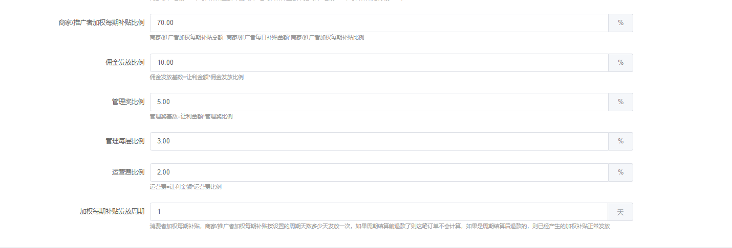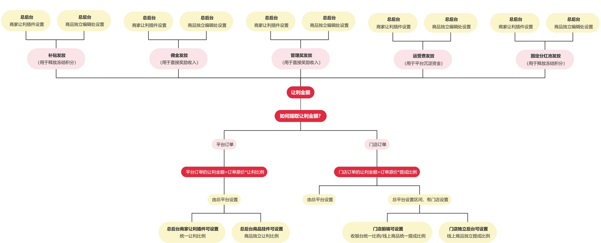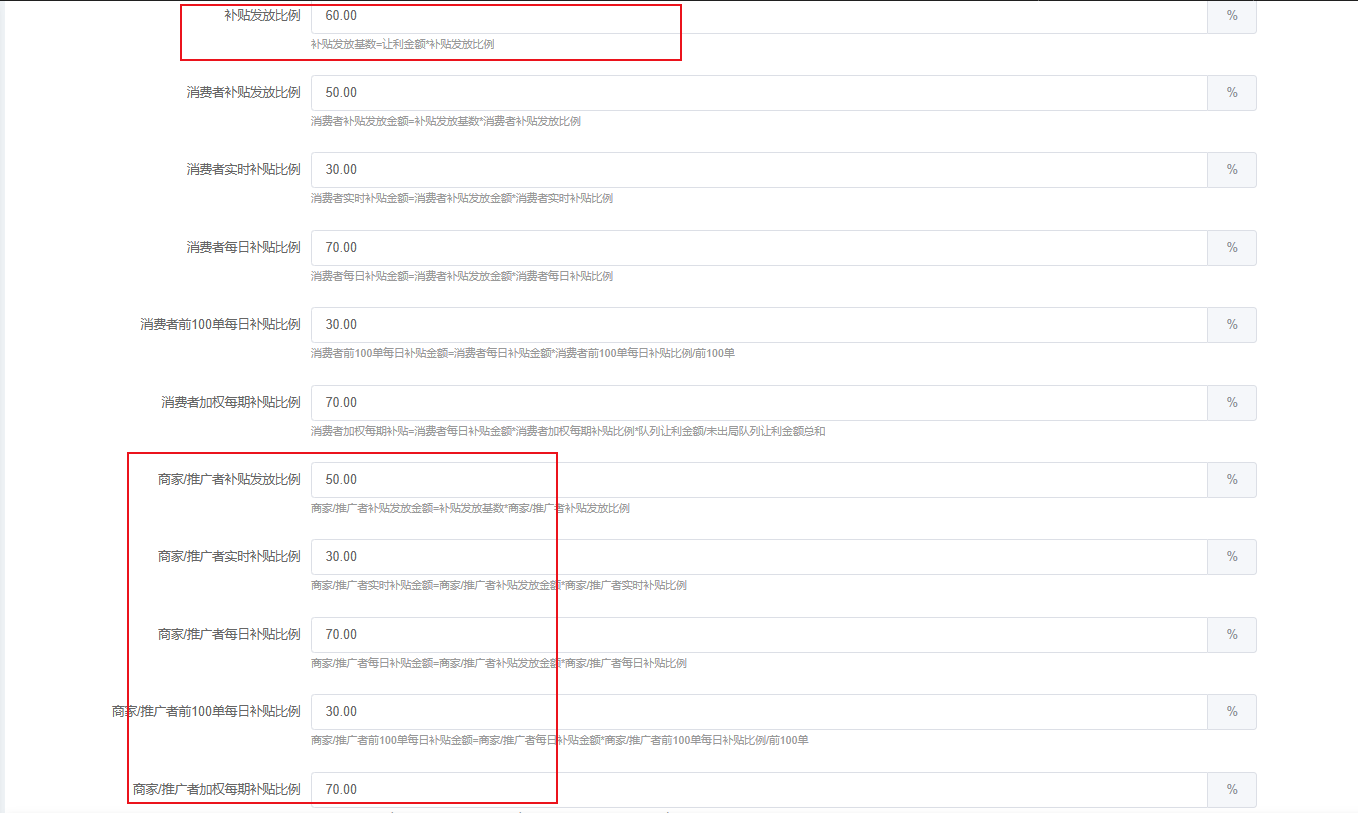 订单金额*让利比例*补贴发放比例*商家/推广者团队补贴发放比例*商家/推广者实时补贴比例