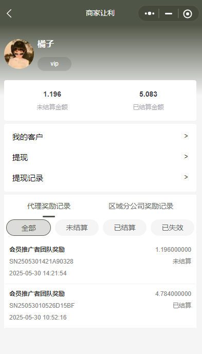 10)业绩统计:订单完成后/支付后,代理管理列表统计业绩业绩以及代理商等级中累计统计的