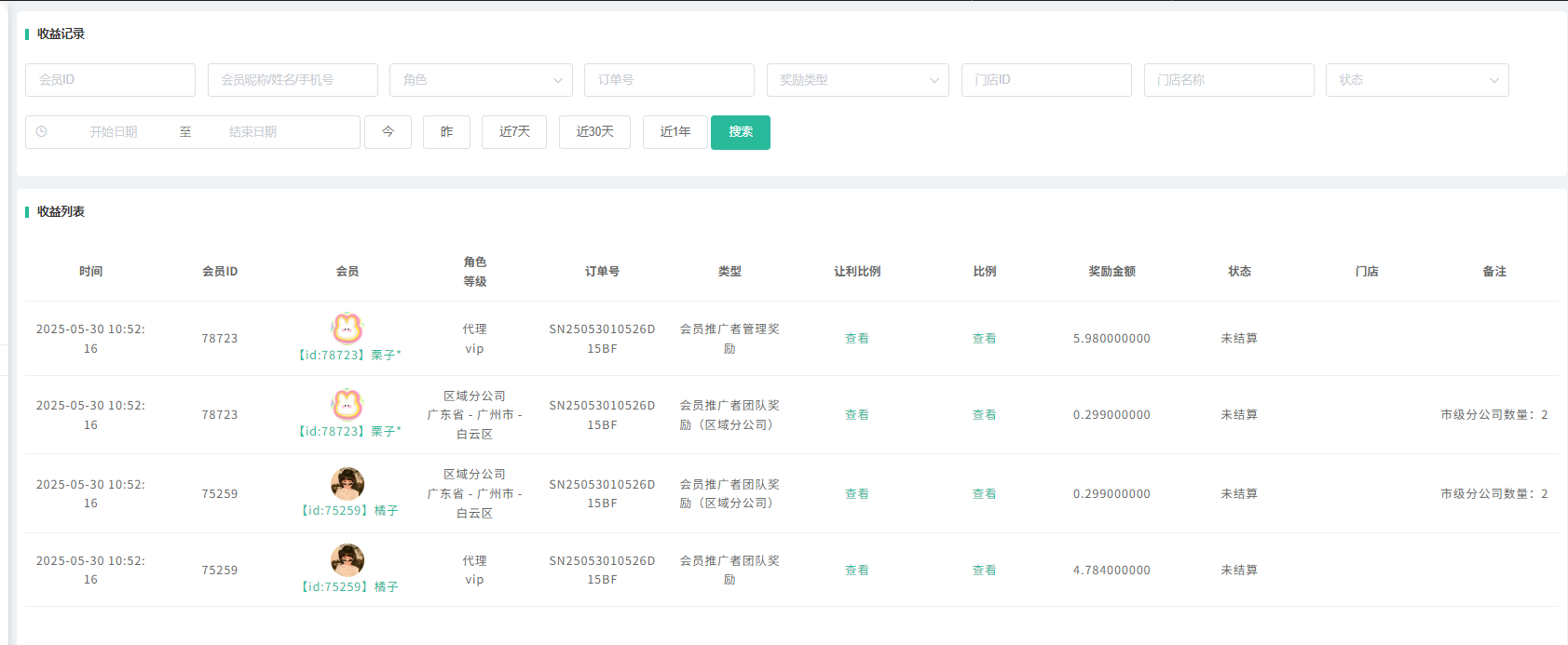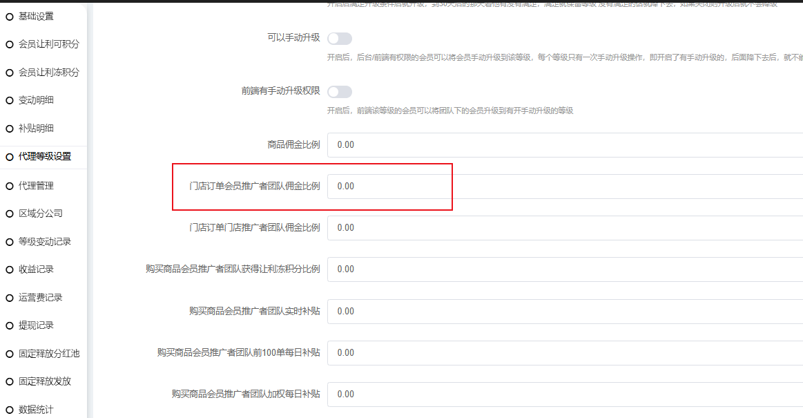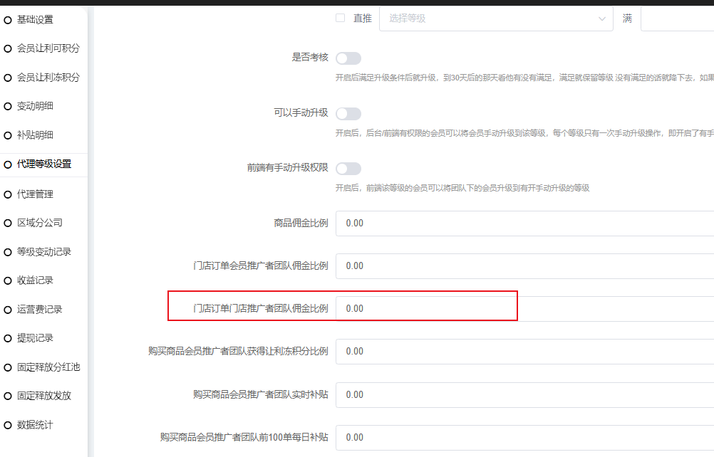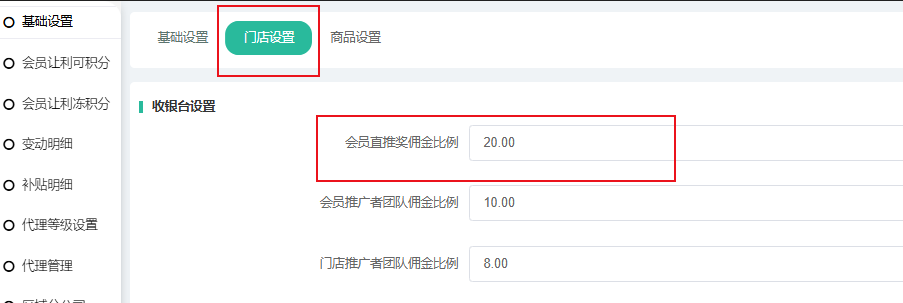公式:让利金额*管理奖发放比例*收银台门店/会员推广者管理奖佣金比例