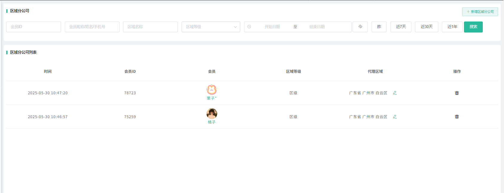 会员推广者团队奖励(区域分公司):根据收货地址/⻔店地址给对应的区域代理