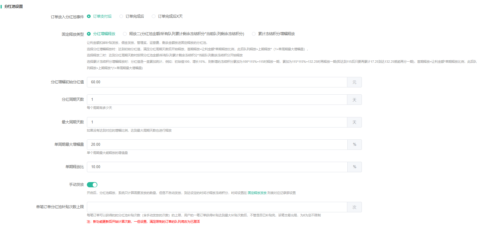 根据平台订单,实时累加的积分池总数,订单产生的积分:由单笔订单产生的积分每笔订单分成规则:订单产生的积分/积分池X消费者每日加权积分补贴的积分值
