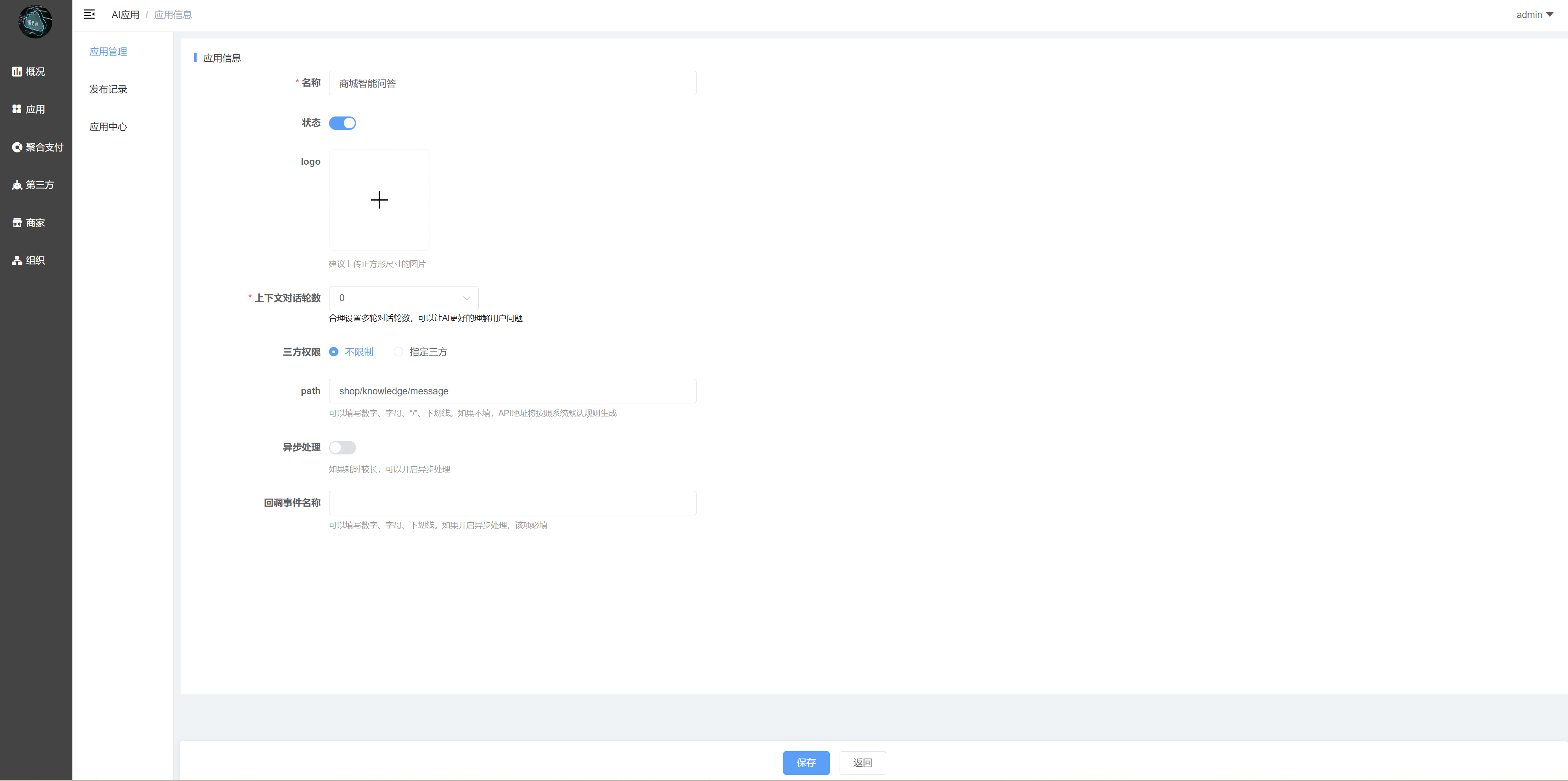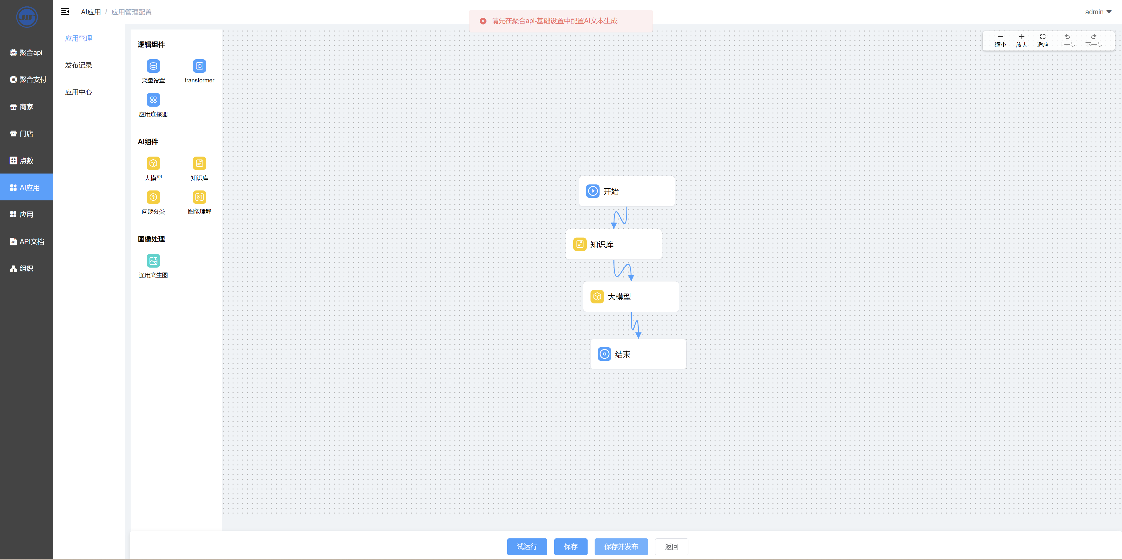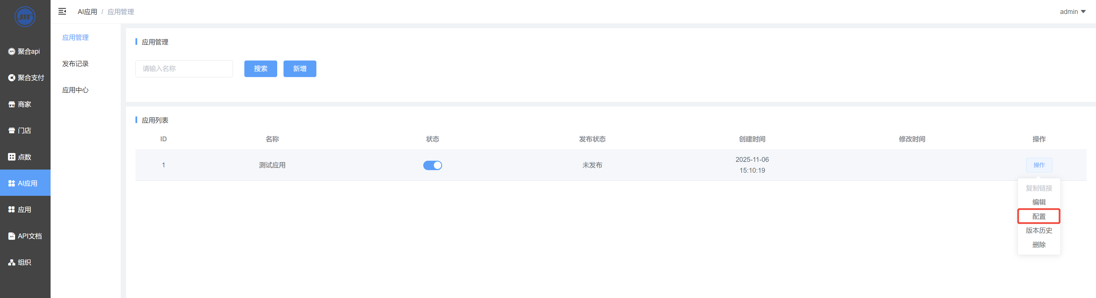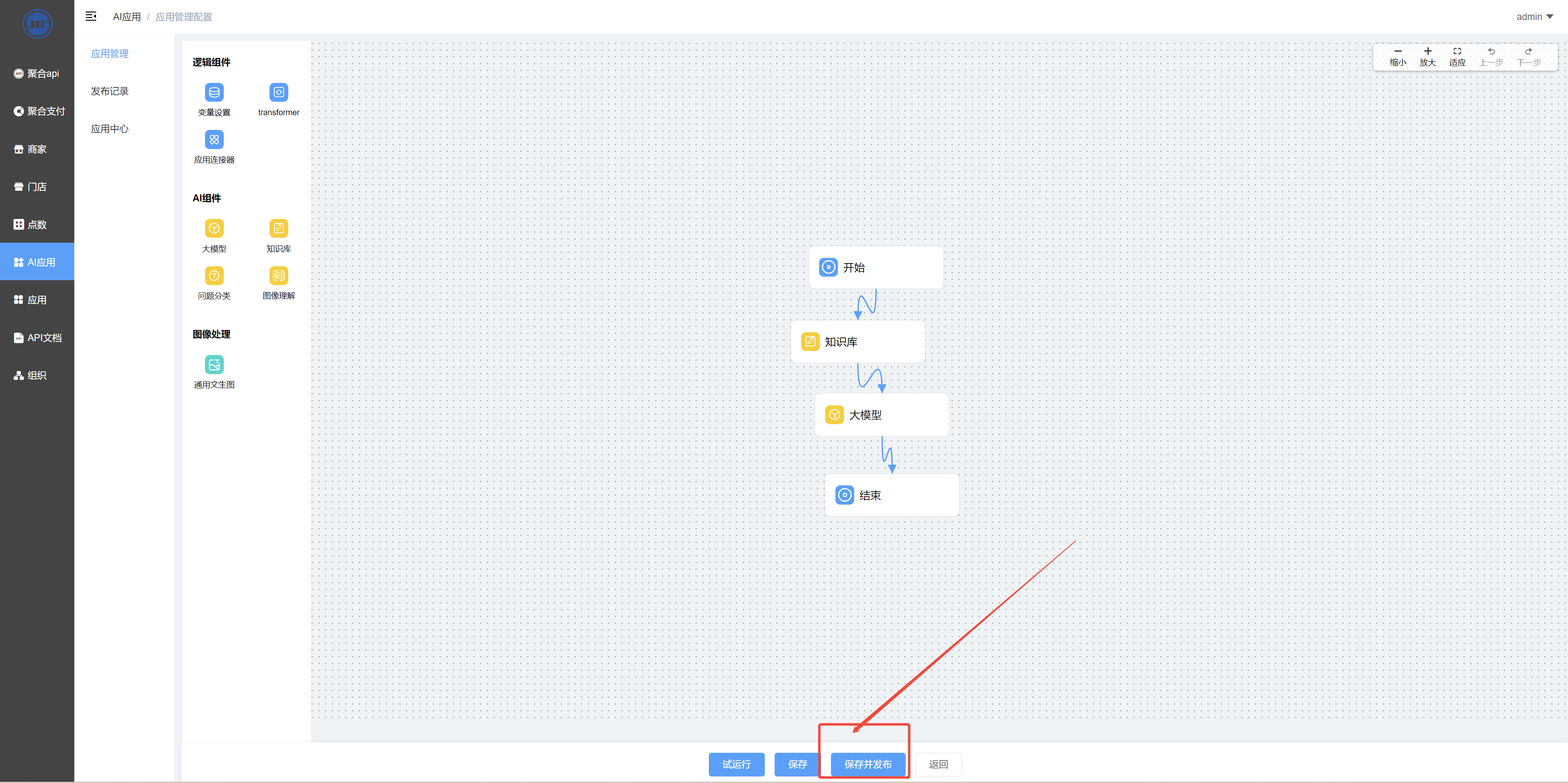 配置完成后可以进行发布,发布后可对下游系统提供API接口进行AI应用调用。