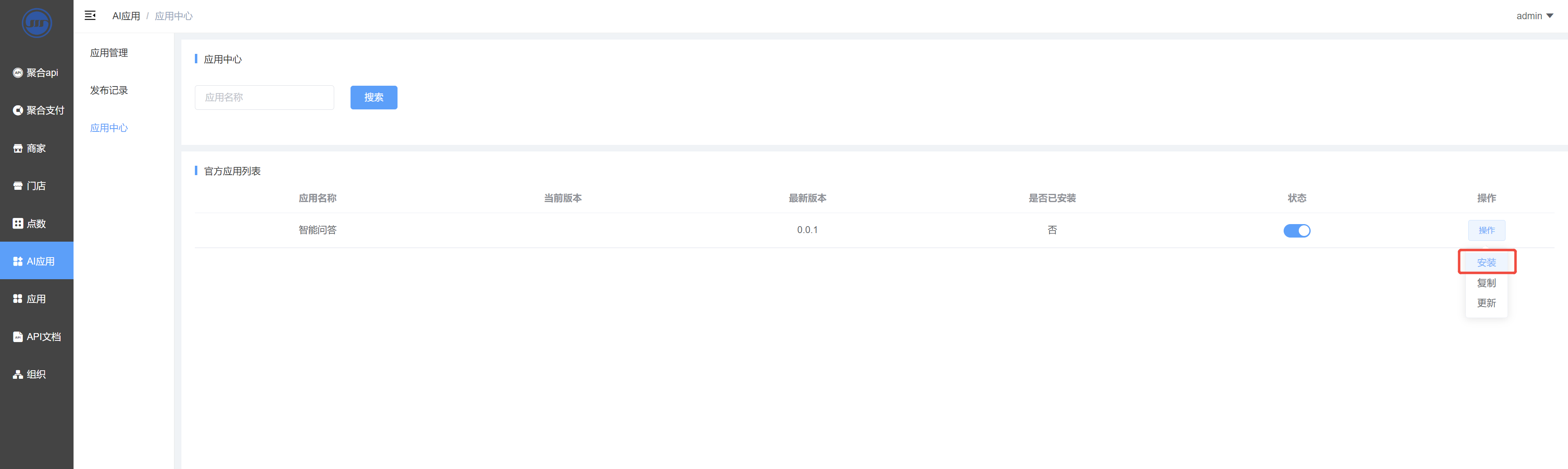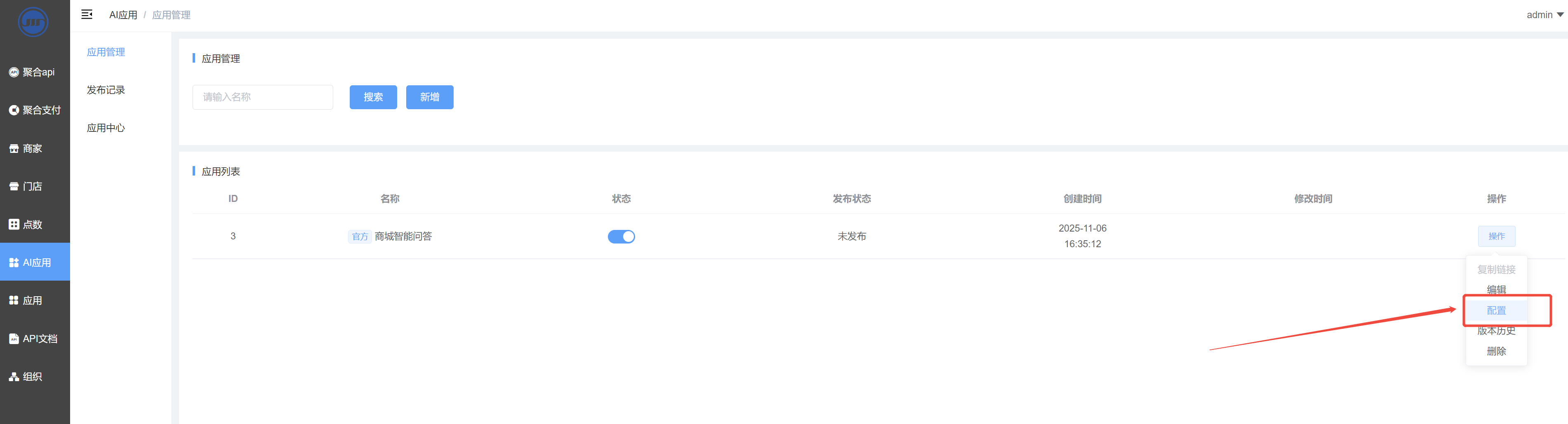 安装官方应用后,在应用管理列表中找到安装的应用,操作–配置,直接点击保存并发布,不需要修改其他任何信息。