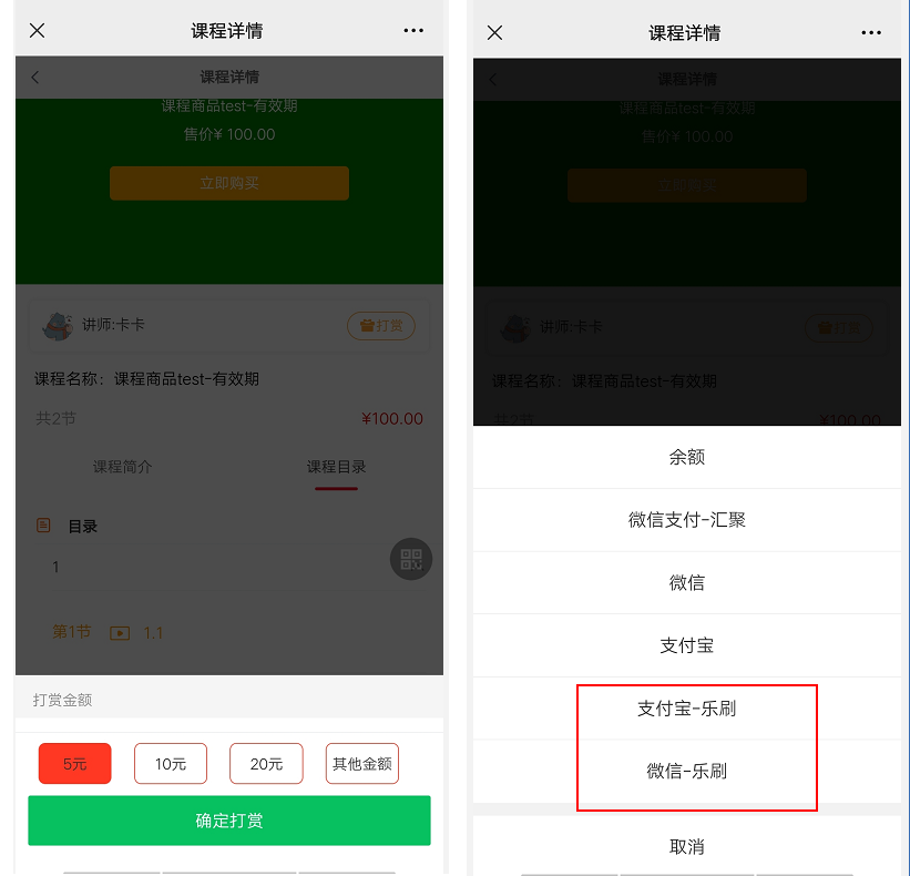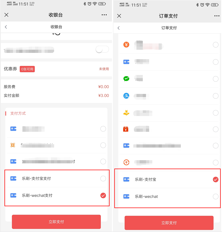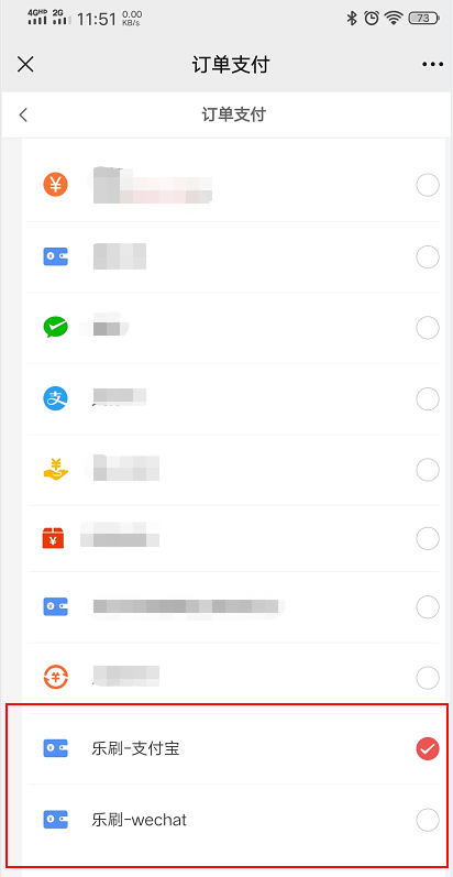 *支付宝、微信自定义按钮名称:设置自定义名称后在前端显示,为空默认为支付宝-乐刷、微信-乐刷