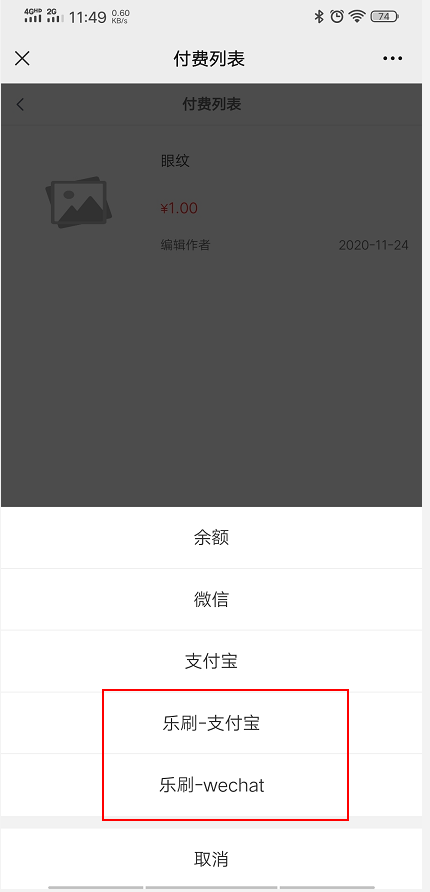 *商户扫码收款:开启后,pos收银显示乐刷聚合-扫码收款支付方式