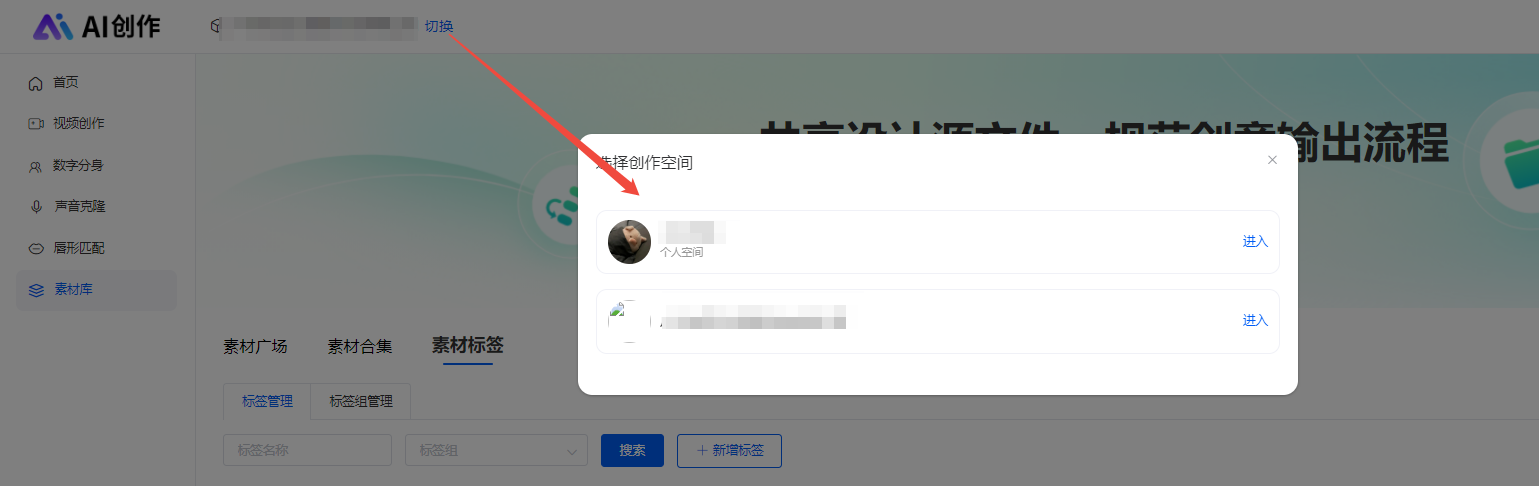 1、会员中心–AI创作–同样可以切换个人或者企业查看,可以看到AI素材库的入口