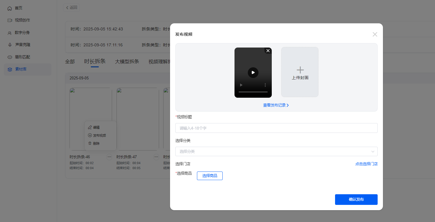 现在所有拆条的视频,拆表视频可以进行发布视频