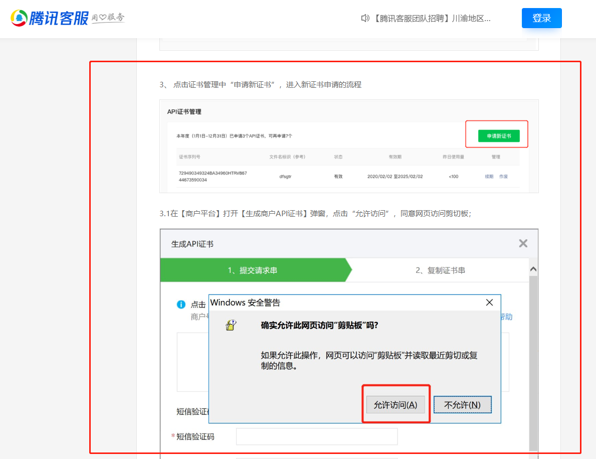 5、腾讯提供的申请API证书说明指引(第三方提供的页面会存在变化,如打开发现页面不同,自行重新搜索):https://kf.qq.com/faq/161222NneAJf161222U7fARv.html