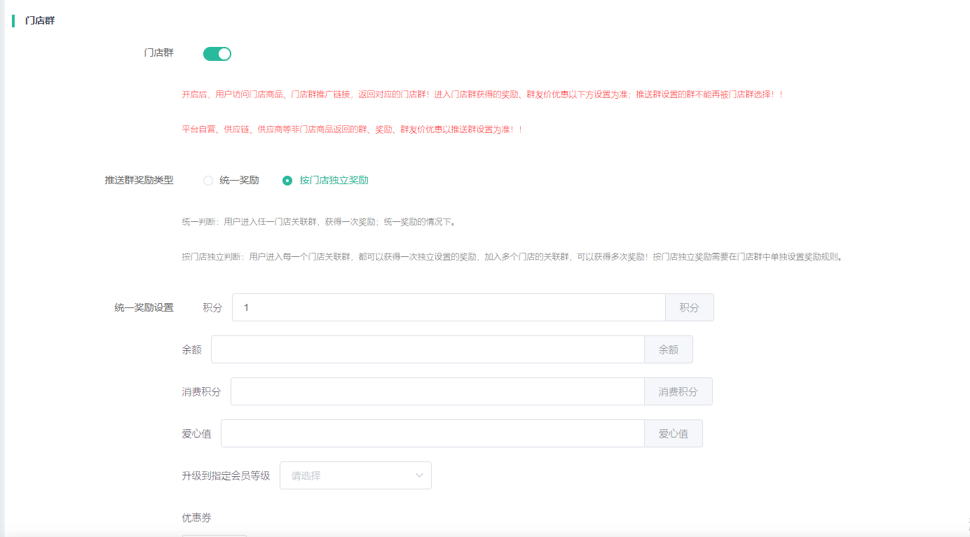 当推送群奖励类型选择 门店独立奖励时 门店需要设置奖励