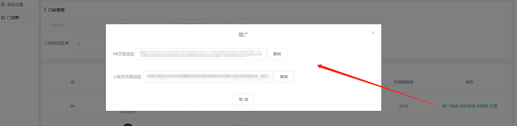2、推广链接/领取链接:门店独立的推广/独立链接
