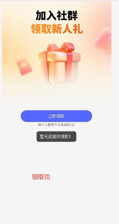 访问页面后,程序判断当前用户是否在指定的群聊中,是否未领取过奖励,如果满足条件就可以获得奖励!