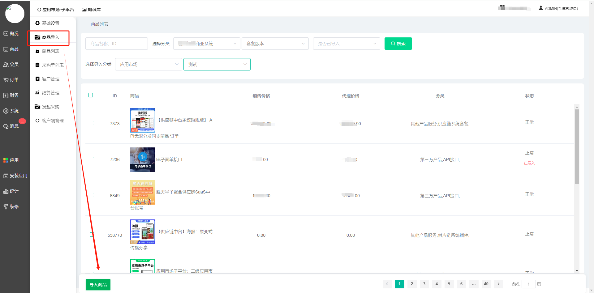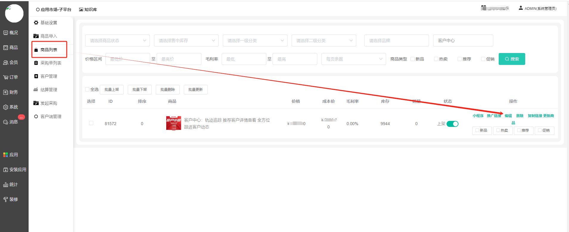 显示已导入的商品列表,支持编辑商品,设置商品相关信息。