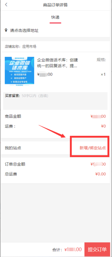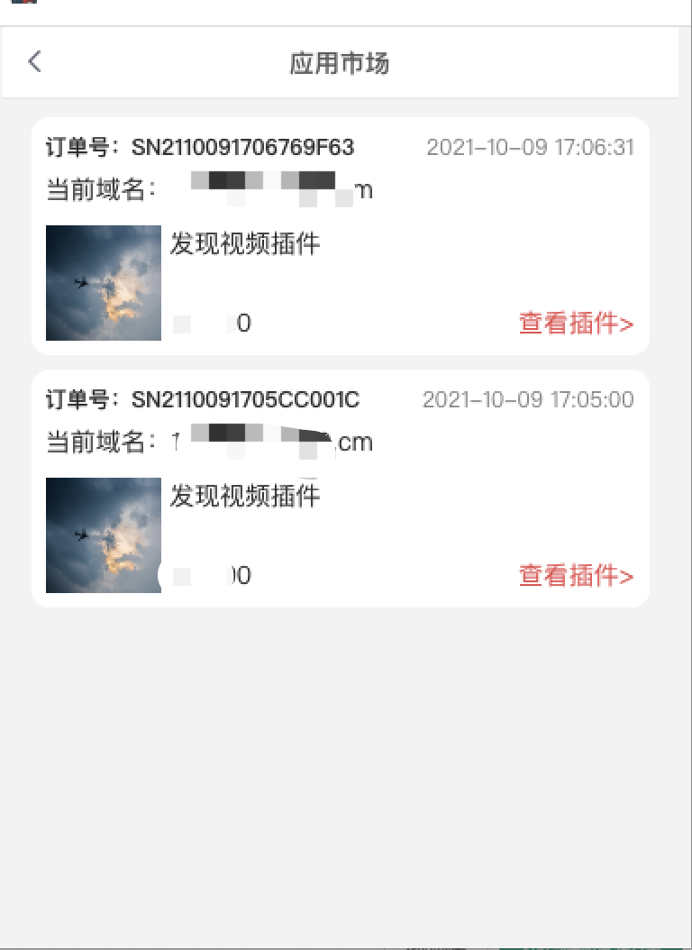 1、通过代理公众号,搜索需要购买的插件,选择立即购买后,订单详情-我的站点,按提示绑定或添加站点