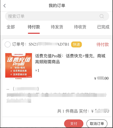 3、进入会员中心-待支付订单-找到刚刚采购的订单完成支付,插件即完成授权,自行登录商城后台去安装即可
