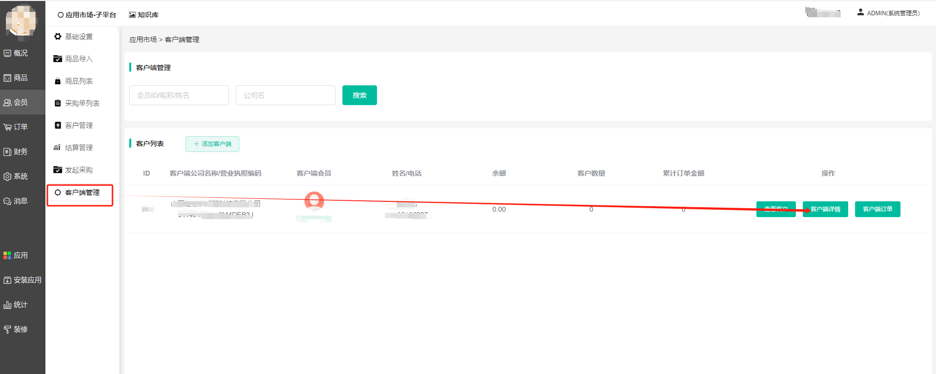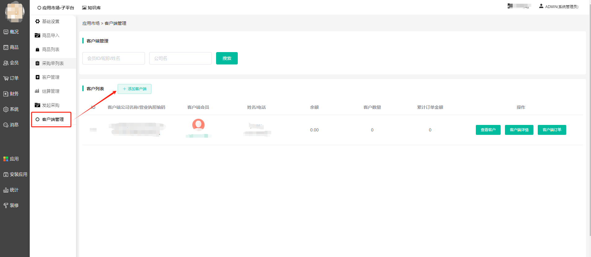 1-1.一级代理需要先在应用市场客户端管理——添加客户端(注意:前提是一级代理有开通应用市场子平台,一级代理开通应用市场子平台后才能给二级代理开通)