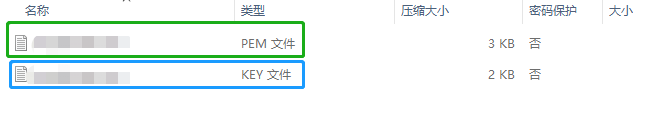 其中蓝框.key后缀的是服务器私钥,填入面板证书的左边蓝框中(用文本编辑器完整复制粘贴进去)