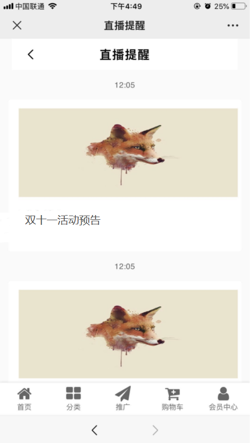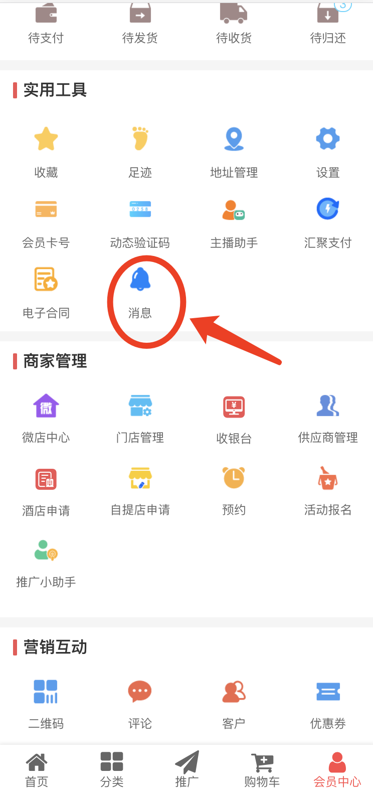 2.消息首页,可查看收到的消息的分类,一周内收到的消息列表(一周内无消息的话此模块不显示)