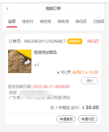 注意:租赁商品,选择快递配送,租赁商品到期日期是从 “确认收货时间” 开始统计;如果是 选择 自提点核销 ,租赁商品到期日期是从“扫码核销时间”开始统计
