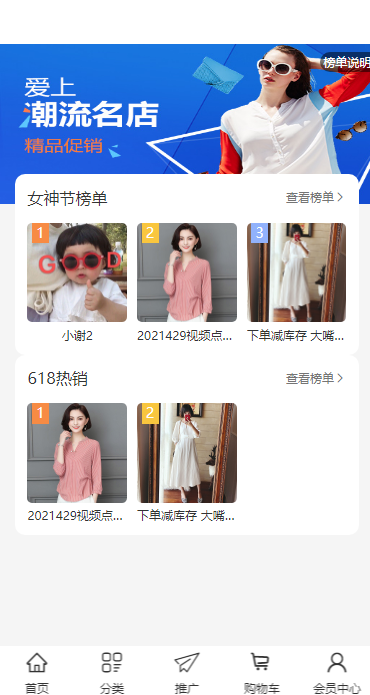 后台添加的所有榜单都会显示在商品榜单聚合页中。