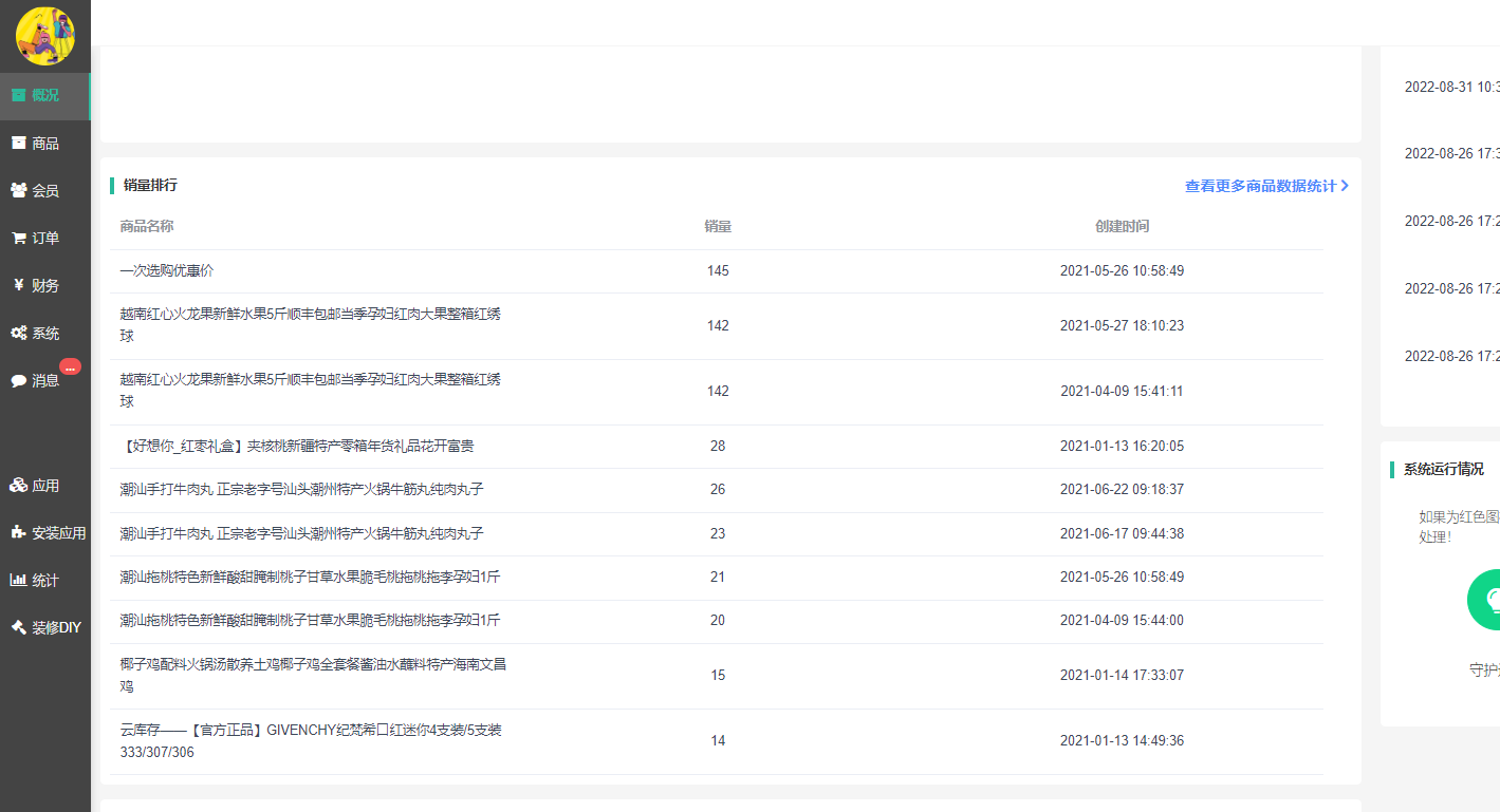通过框架–平台管理–选择具体的平台,点击管理按钮即可进入商城管理–概况页面!!