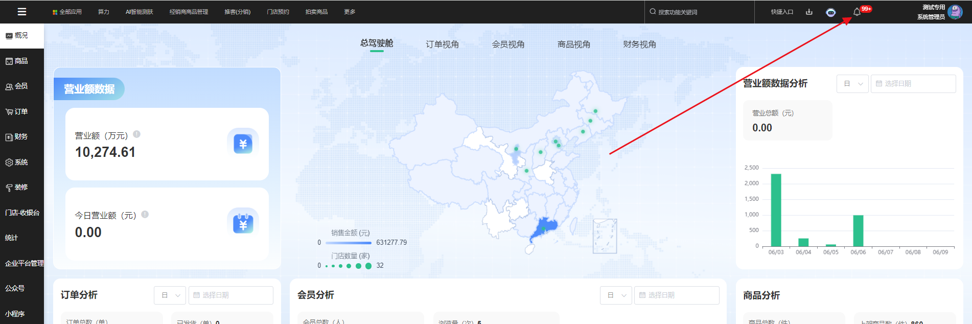 该功能升级到系统最新版本即可获得,不需要单独安装插件,功能入口在后台右上角–消息;如下图: