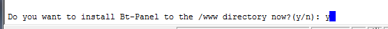 3. 您想现在安装bt面板到www目录吗? 输入y 然后按回车下一步(必须在/www目录,宝塔规定)