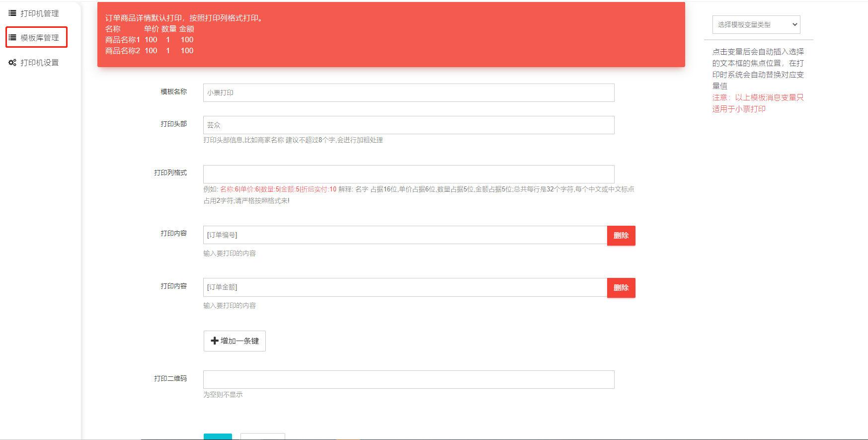门店独立后台–pos打印机设置:这个是针对商米D2的,在打印机管理(旧)设置的模板后,在pos打印机设置才可以选择,商米D2下单可以根据这里的模板出小票