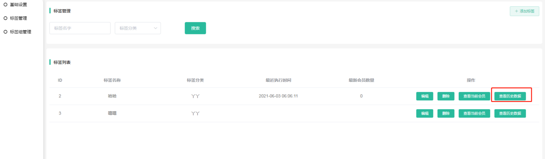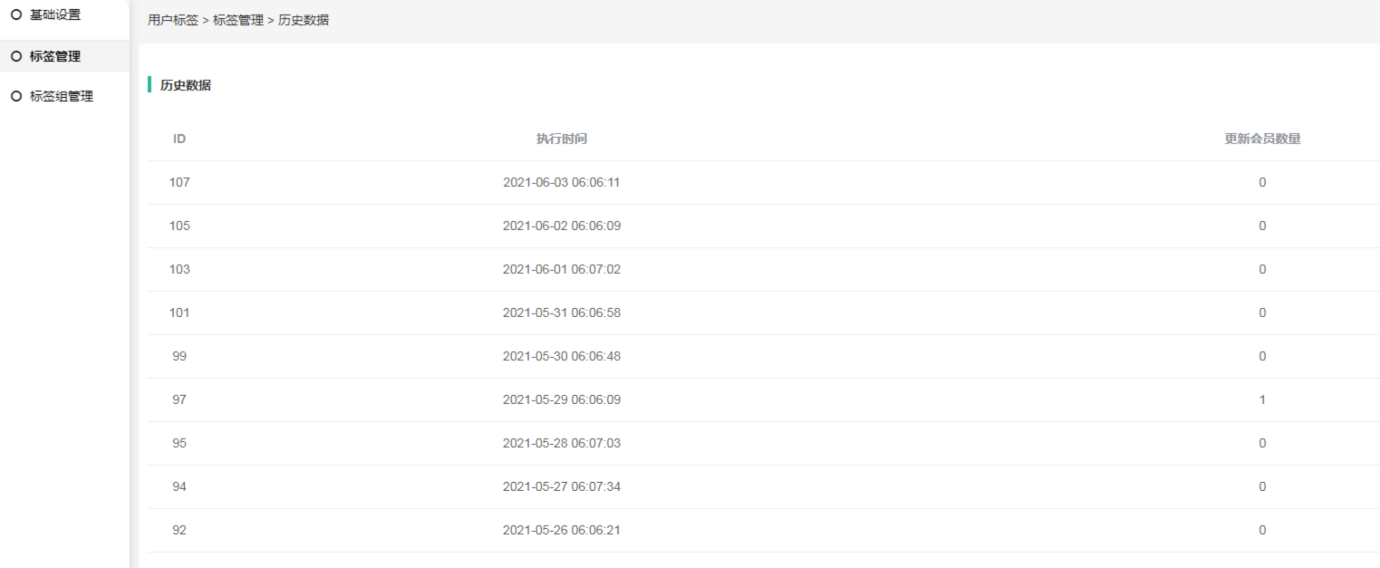 最新会员数量:显示的是自动标签更新时间任务执行的时候给多少个会员添加了标签