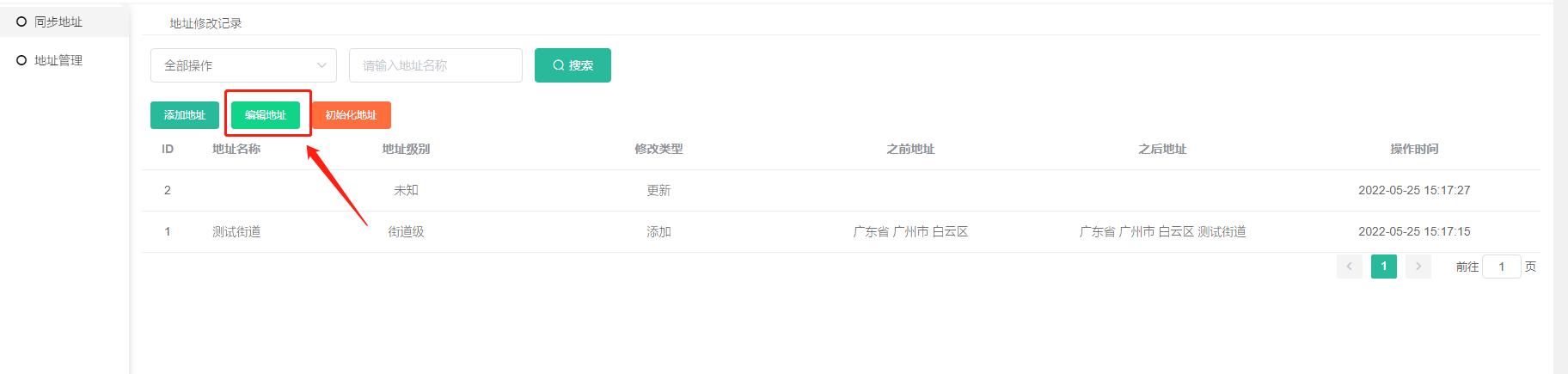 2、编辑地址:修改地址名称,支持修改区级、街道级地址名称。