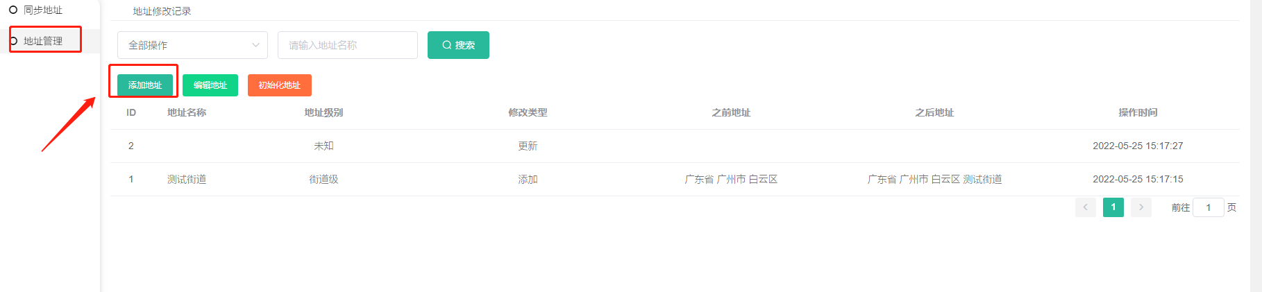 添加新地址或修改地址名称后,如前端不显示或者显示名称不一致的,可通过同步地址操作完成前后端地址同步。