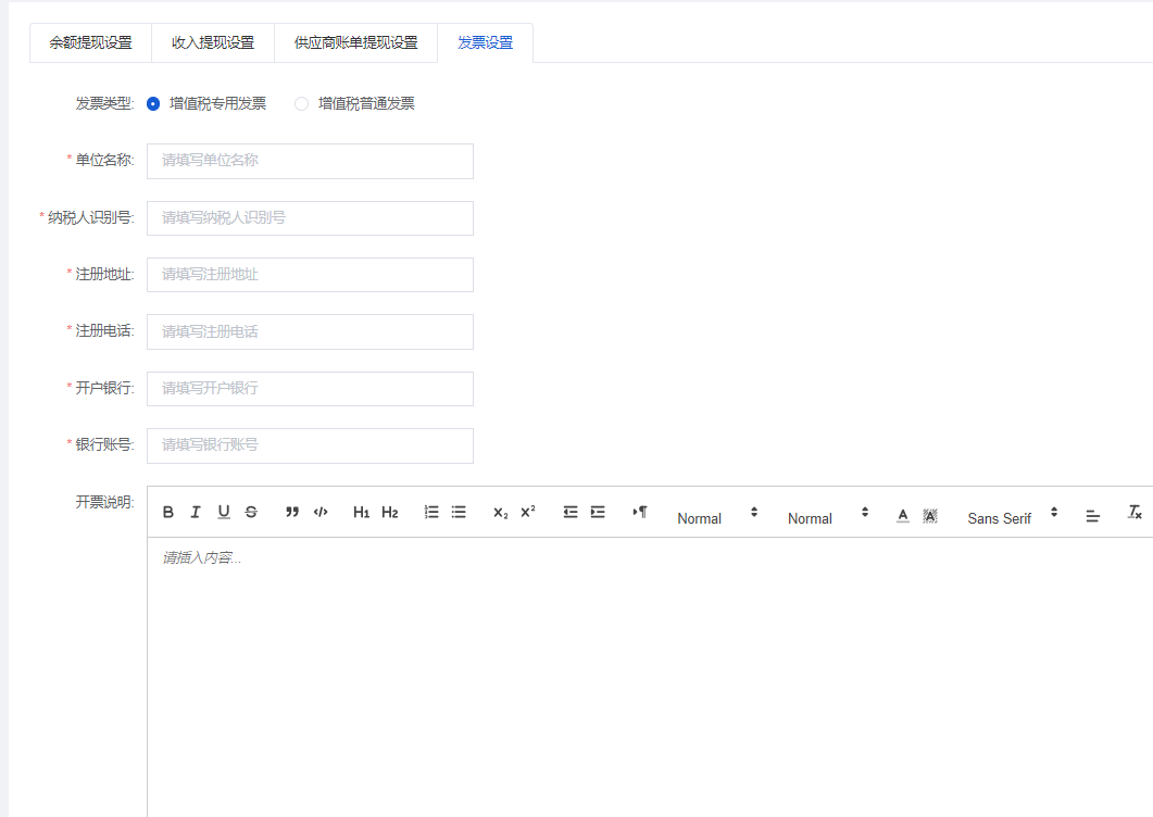 可以选择是否开发票:如果选择时,提现审核通过后,供货商需要先开票上传,才能进入打款环节