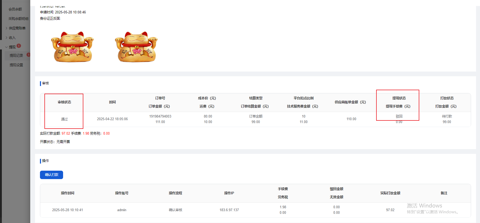 2)提现记录,可以查看提现记录详情,进行审核/打款