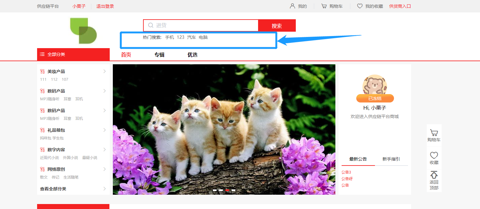 1)设置首页搜索框默认搜索词、热搜词
