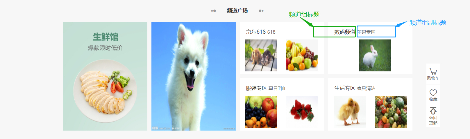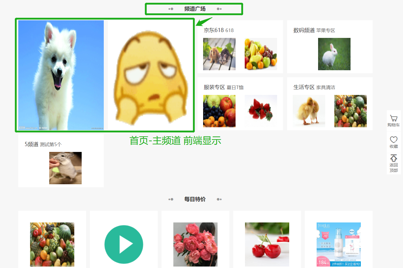 首页-主频道:上传移动端图片会优先展示移动端图片,如果没上传就会展示上方的默认图片;默认图片是给PC用的,如果移动端图片没上传的话也会展示PC的图片,两个图片的建议尺寸不一样,可参考建议尺寸大小上传