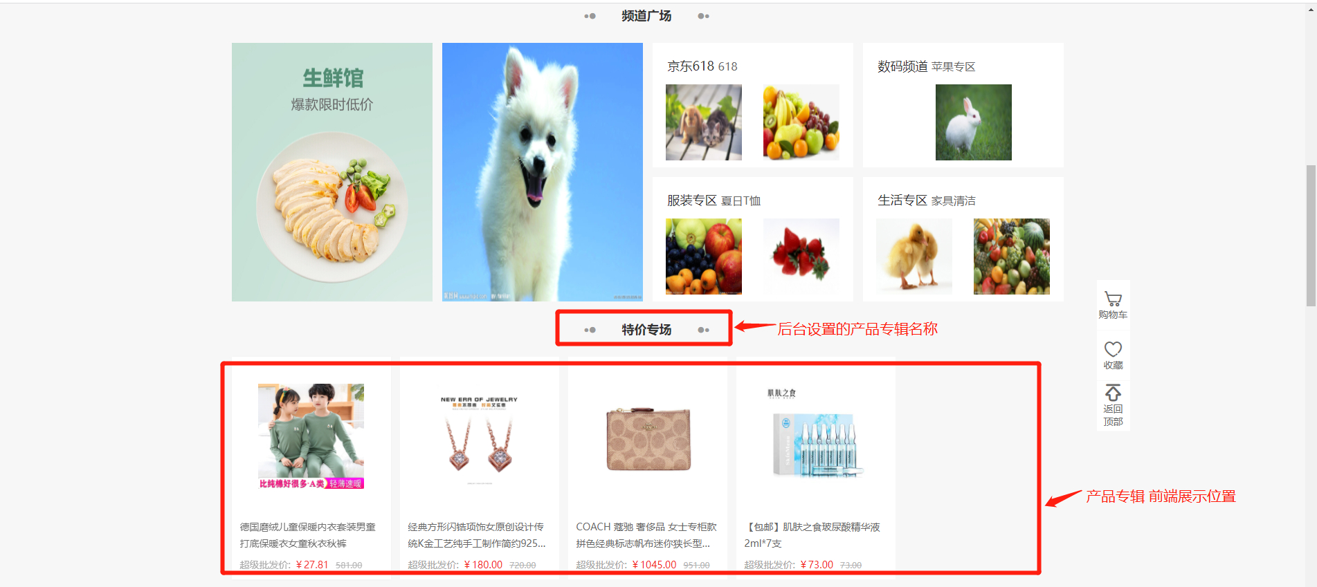 【专辑】专辑本质是商品的集合,广告跳转就会跳到专辑页面。选择专辑后,广告跳转到专辑页面。注:专辑前往商品-商品专辑进行设置。