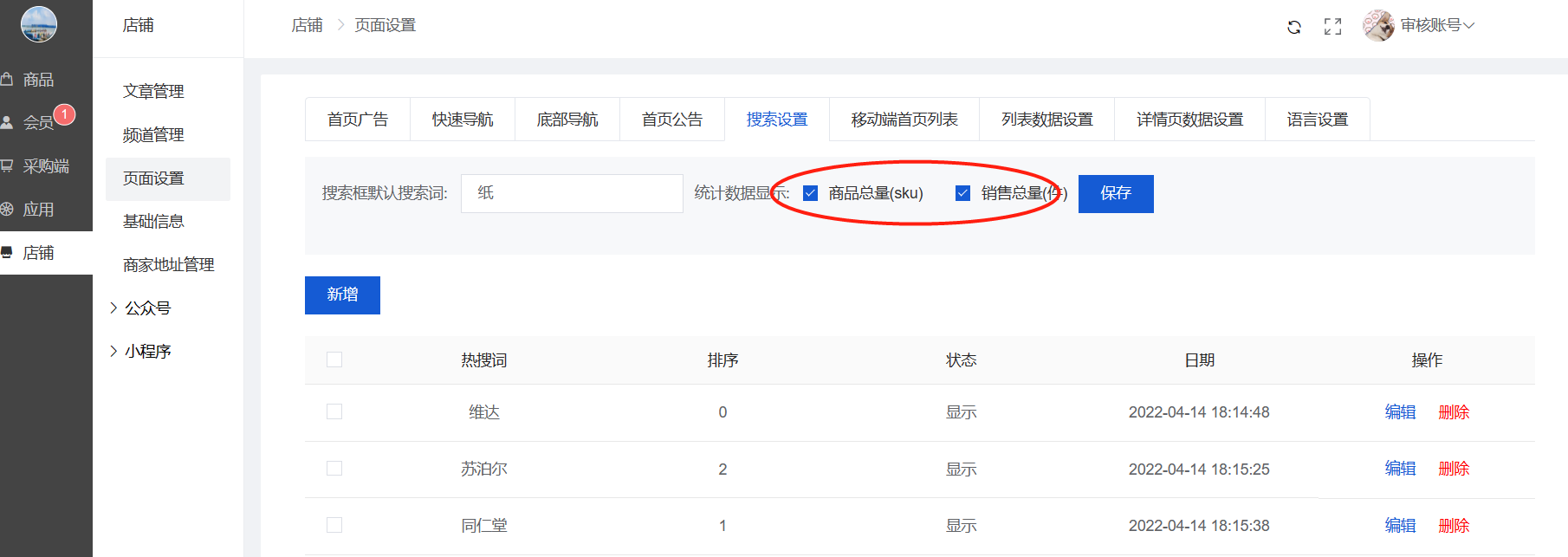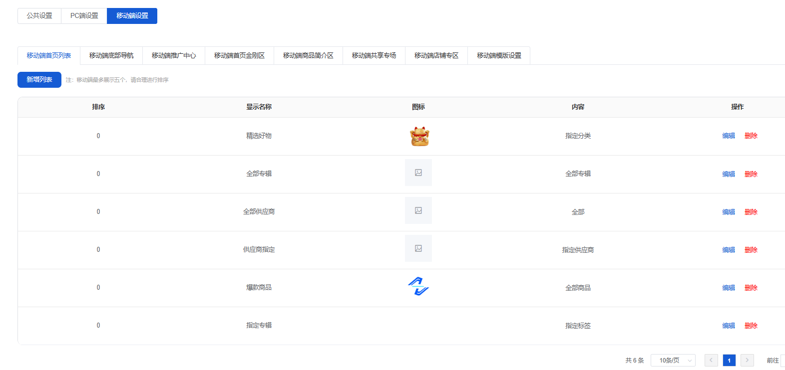 可以新增/编辑/删除采购商城顶部的导航,类似顶部导航,如图