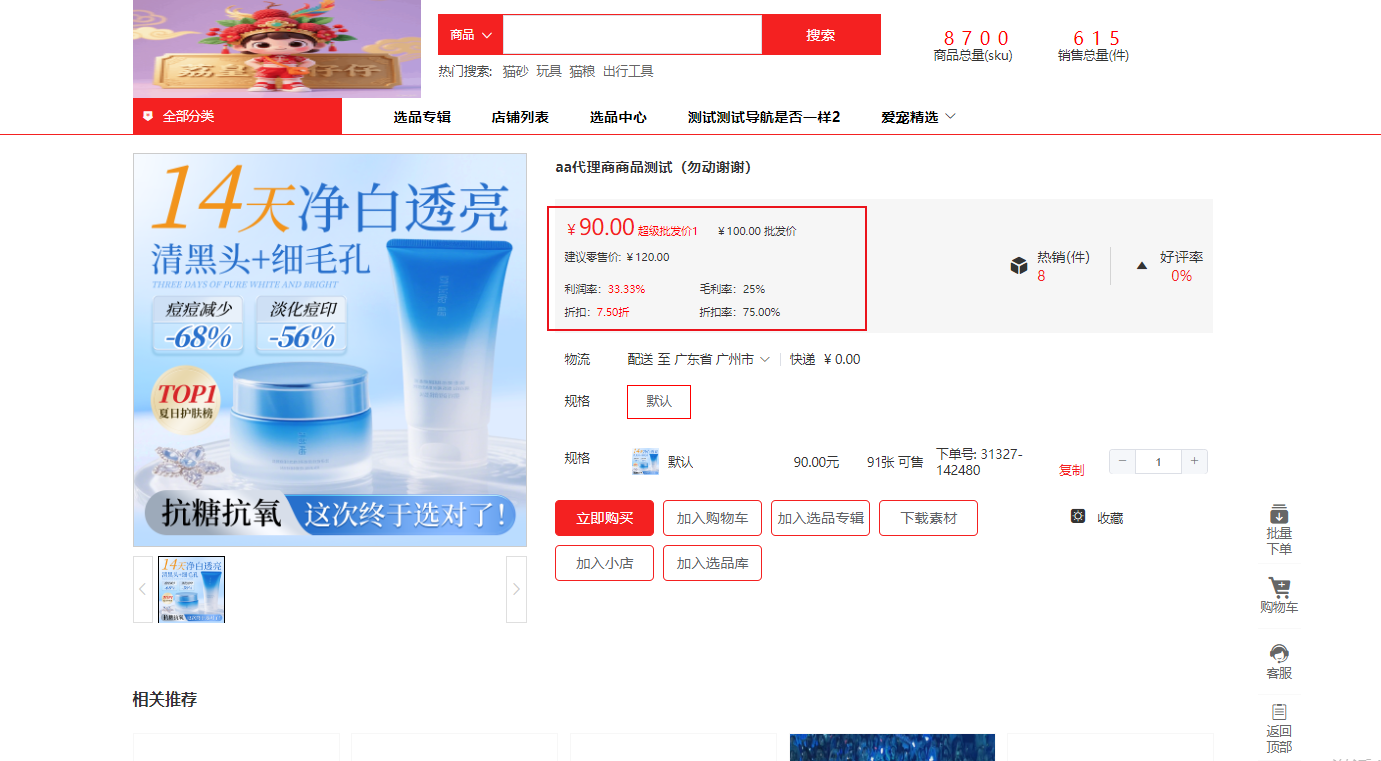 可以自定义批发价、超级批发价、建议零售价的名称前端效果展示: