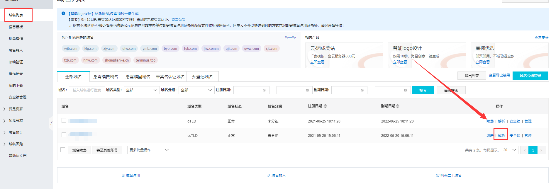 1、登录阿里云-右上角点击控制台-域名,点击进入