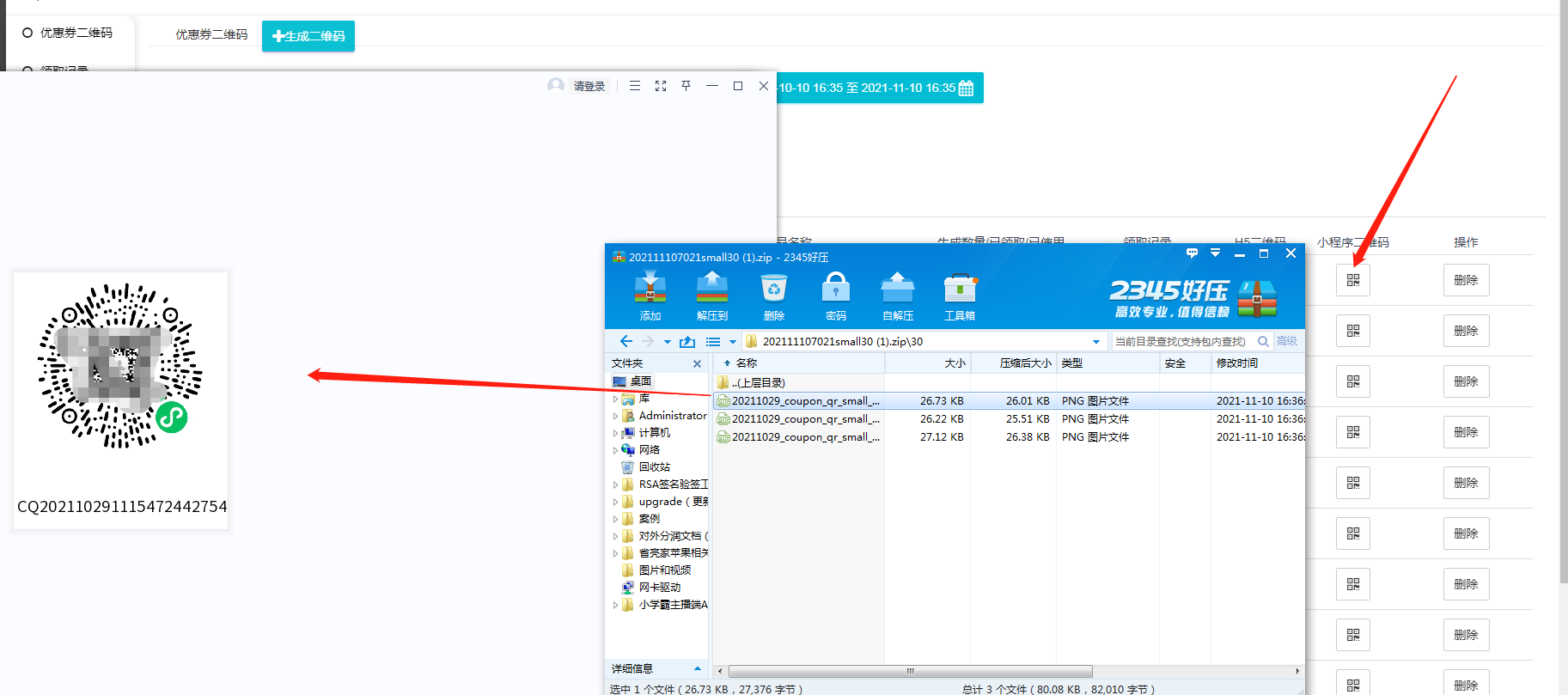 如果生成的是小程序二维码,下载的是小程序二维码的太阳码压缩包。里面包含对应数量的二维码。