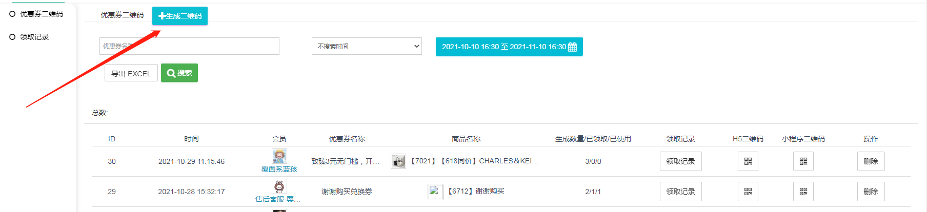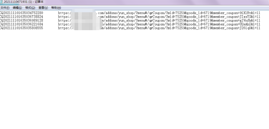 H5(公众号)优惠券二维码下载为TXT格式,可导入印刷,防伪等软件批量印刷二维码。